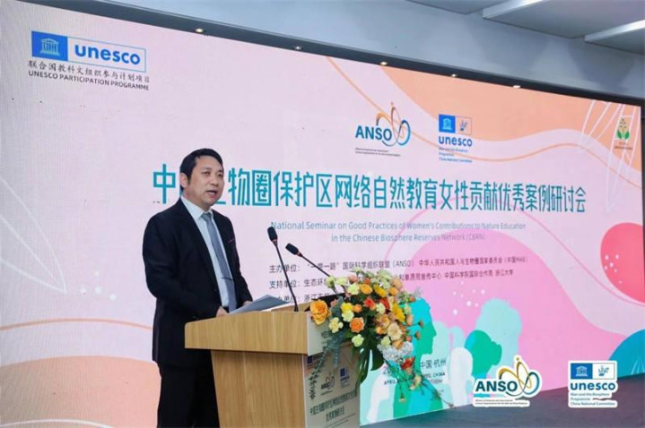 4月20日—23日,在联合国教科文组织参与计划(UNESCOParticipationProgramme)项目的支持下,由“一带一路”国际科学组织联盟(ANSO)和中国人与生物圈国家委员会(中国MAB)联合主办的“中国生物圈保护区网络(CBRN)自然教育女性贡献优秀案例研讨会”在浙江杭州举办。该研讨会由浙江天目山国家级自然保护区管理局承办,旨在向世界展示女性在中国生物圈保护区网络自然教育领域的突出贡献,搭建经验交流与思想碰撞的平台,助力即将在中国杭州召开的第五届世界生物圈保护区大会。会议得到了生态环境部宣传教育中心、国家林业和草原局宣传中心、中国科学院国际合作局、浙江大学的支持。ANSO秘书处副主任易志军主持开幕式,来自全国的80多名嘉宾、专家及优秀案例代表参会。